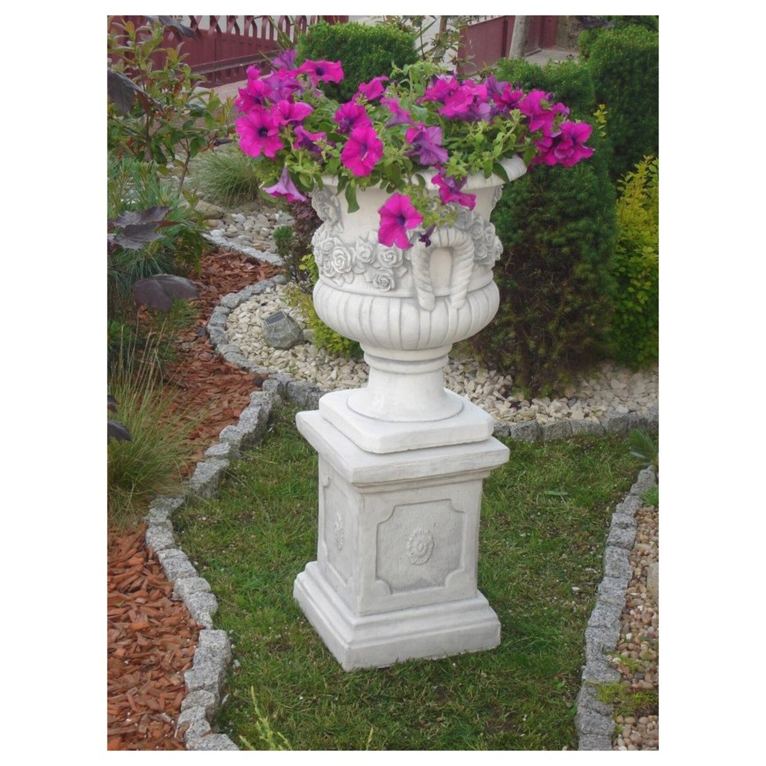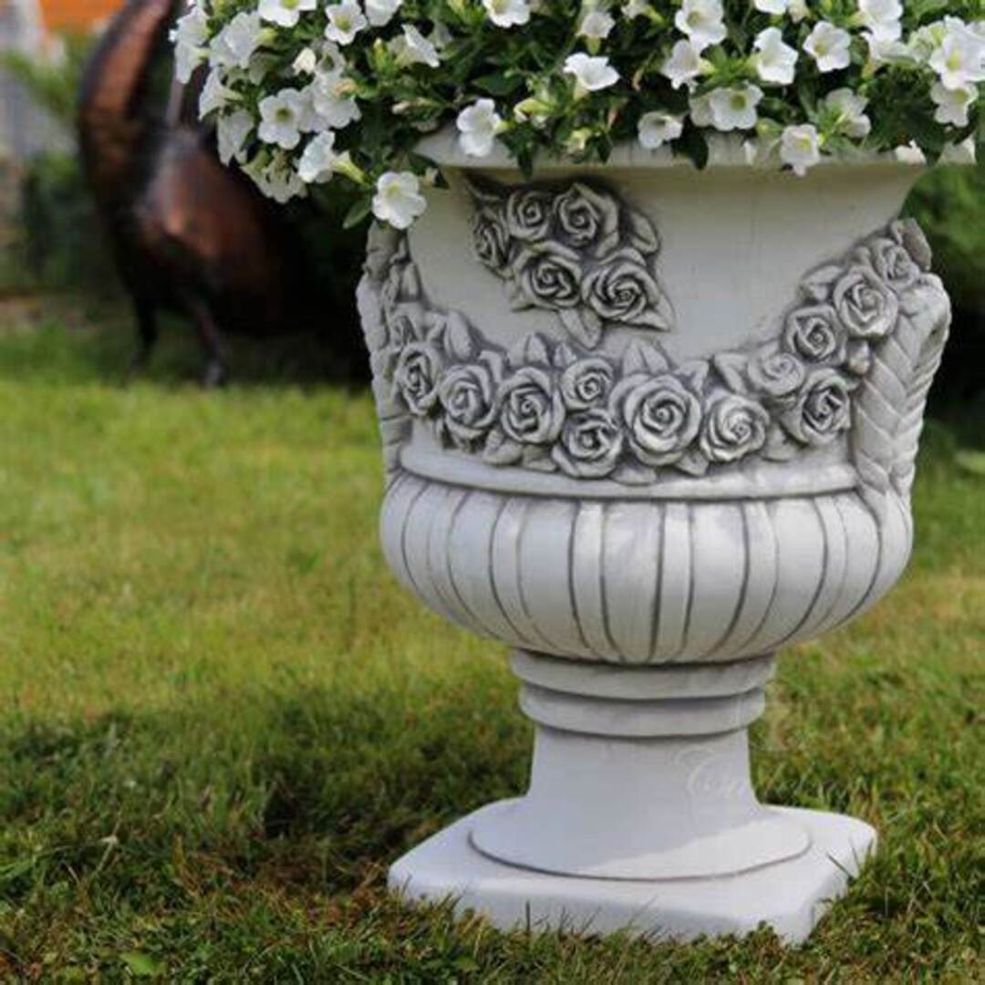 Vaso ornamentale classico in cemento, per l'arredo di giardini, cortili, terrazzi e spazi all'aperto. I vasi di questa collezione sono adorabili, hanno il beneficio di arredare con eleganza la tua casa, realizzati in cemento e polvere di marmo, resistono all'acqua, alle temperature estreme e non hanno bisogno di manutenzione. Disponibili in più finiture e colori.